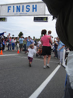 The next morning is the 4-mile and 1-mile runs and Kids Dashes. I ran the 4-mile last year and Ty joined me this year. Okay, so we saw each other at the start and finish. His time was a whole lot better than mine...but I have shorter legs! My dear friend Tristalene ran with me again this year. I felt awesome about my time. I beat last year's time by about 4 minutes. It was $2 to sign Max up for a kid's dash so we figured that even if he froze (which he did) the $2 would be worth the picture and the memory. Little did we know that he would get a stuffed whale and a finisher's ribbon to boot!